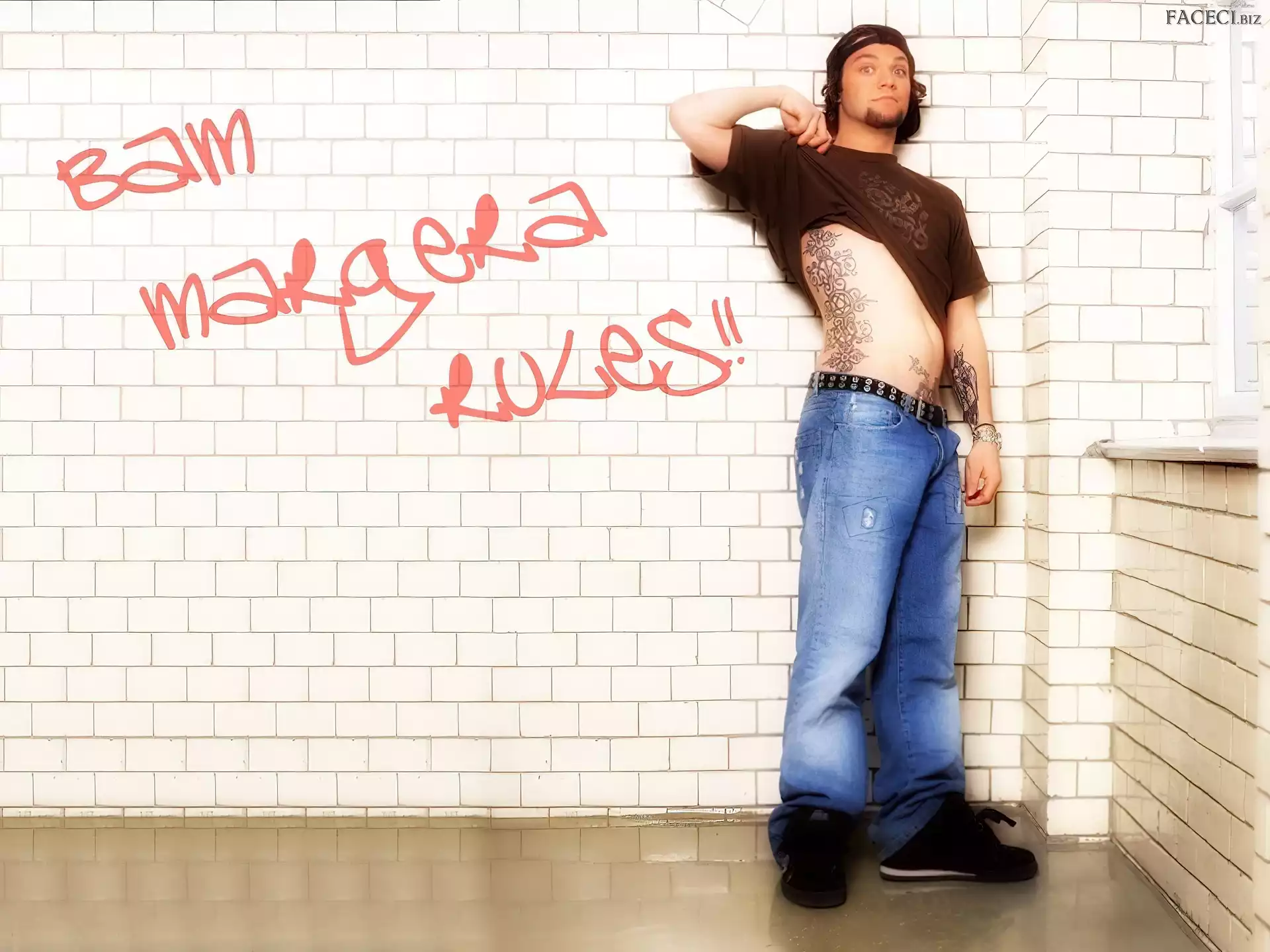włosy, Bam Margera, ciemne okulary, Bam Margera, twarze t-shirt, Bam Margera, brązowy okulary, Bam Margera, butelka zegarek, Bam Margera, deskorolka kurtka, Bam Margera, rozpięta