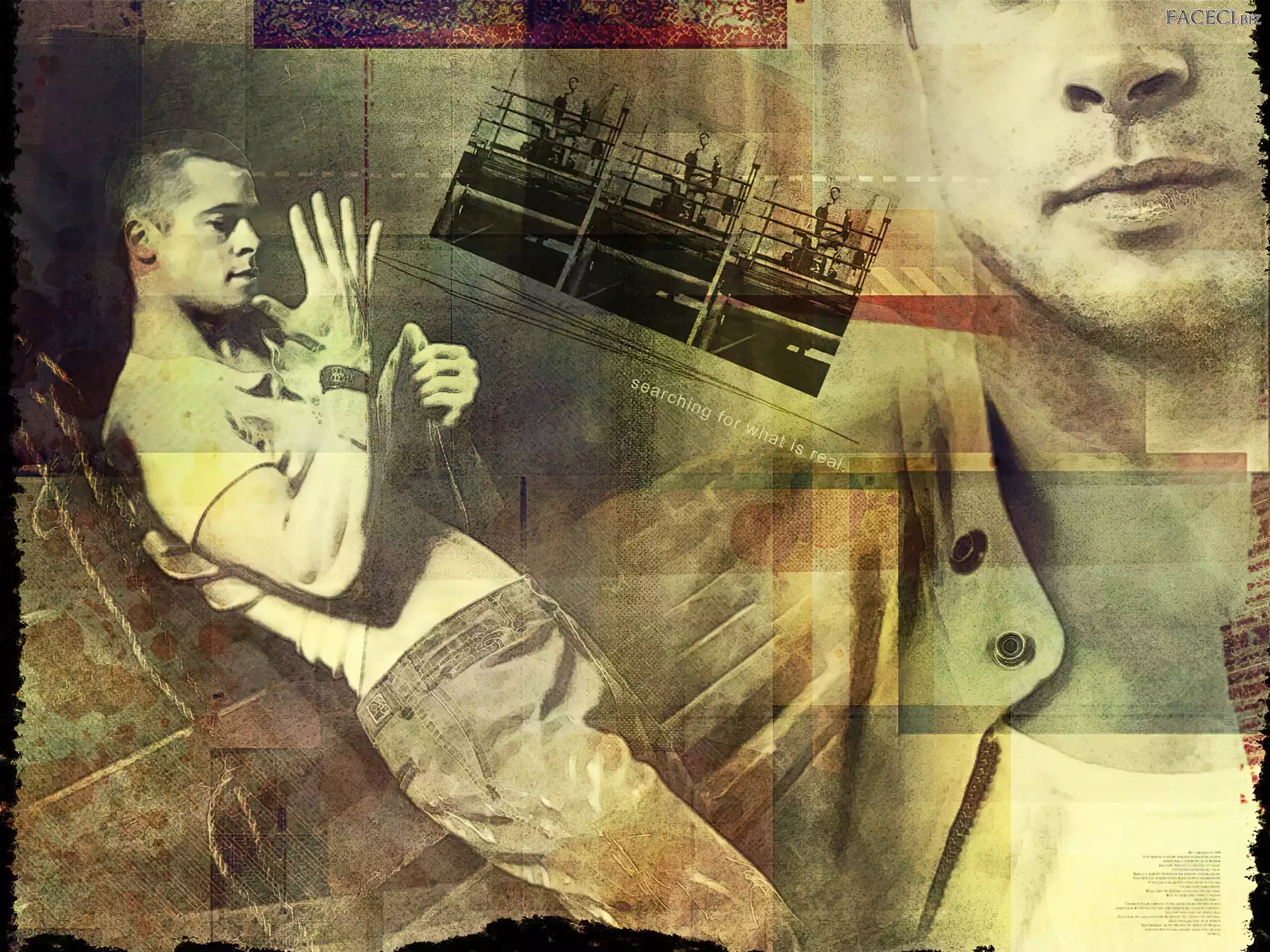 +, Brad Pitt, Tatuaż Okulary, Jean Reno, Twarz oczy, Dominic Monaghan, twarz